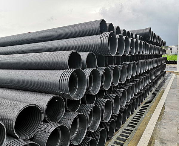 中空壁纏繞管具有平整的內(nèi)外表面,屬于柔韌性管。其延伸性好、抗壓和不均勻沉降能力強,提高了公用設施抗震、減災的能力。中空壁纏繞管材內(nèi)壁糙率N約為0.01,因此輸送流體時比摩阻小,在同等使用條件下輸水量較水泥管可大幅度提高,可以用較小管徑代替大管徑的混凝土管。